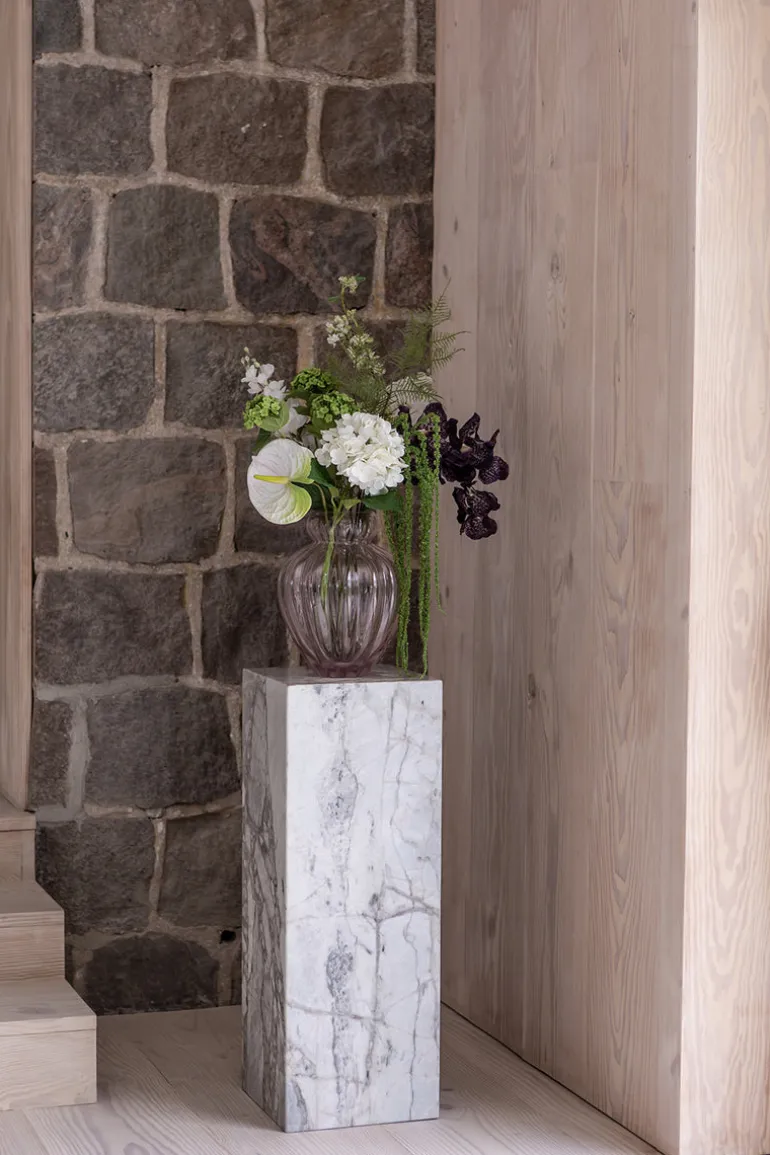 Hver Audrey vase er produceret og mundblæst i Europa. Dette betyder at, hver vase er unik og luftbobler og andre ufuldkommenheder er en del af produktionen, som vi elsker og beundre. Den mundblæste teknik er et gammelt håndværk, der er gået videre i generationer. Vi omfavner den unikke proces og arbejder tæt sammen med vores produktion, for at kombinere vores moderne designs med deres traditionelle færdigheder.