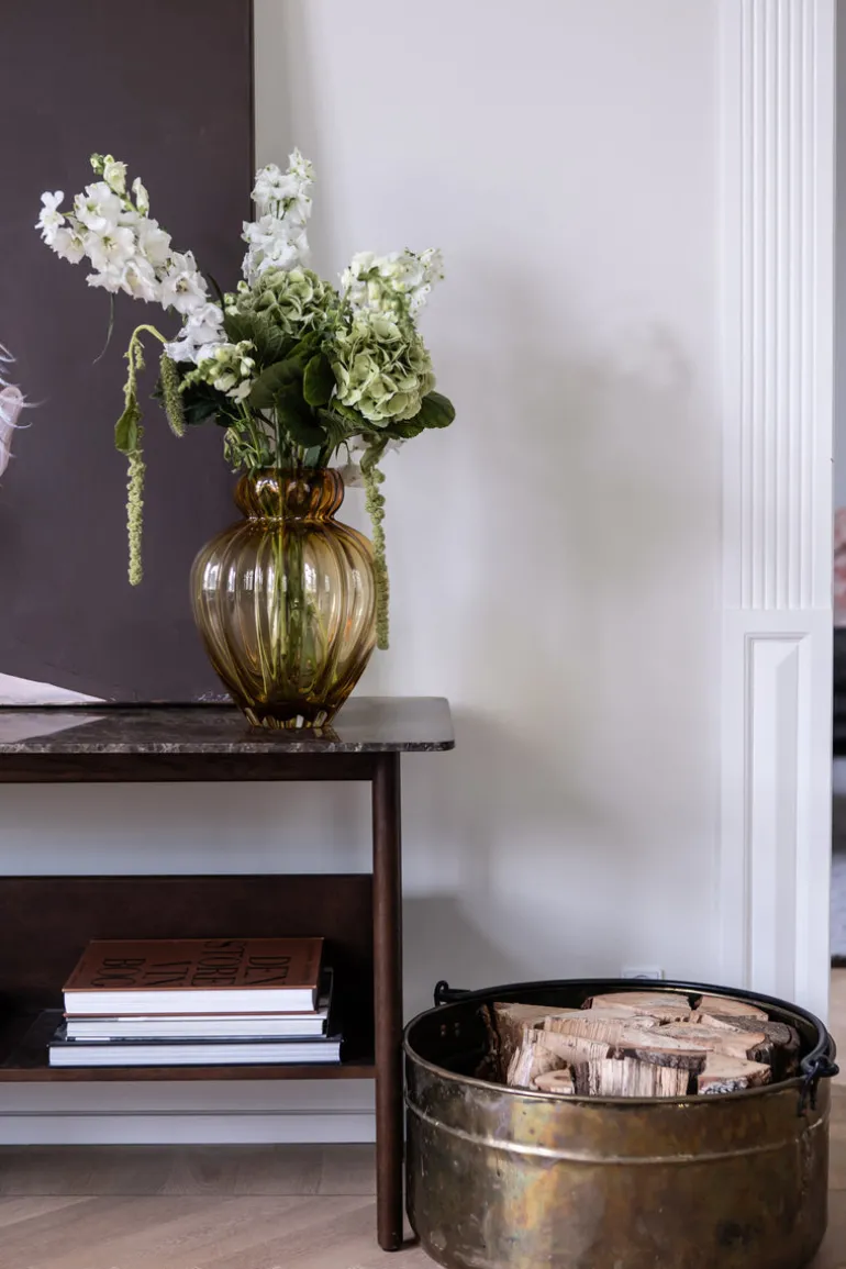Hver Audrey vase er produceret og mundblæst i Europa. Dette betyder at, hver vase er unik og luftbobler og andre ufuldkommenheder er en del af produktionen, som vi elsker og beundre. Den mundblæste teknik er et gammelt håndværk, der er gået videre i generationer. Vi omfavner den unikke proces og arbejder tæt sammen med vores produktion, for at kombinere vores moderne designs med deres traditionelle færdigheder.