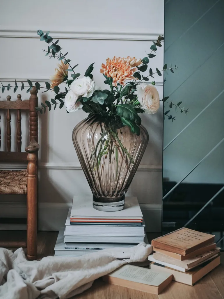 Evelyn Vasen er produceret i Europa og er mundblæst. Den mundblæste teknik er et gammelt og rigt håndværk, der er gået videre i generationer. Vi arbejder meget tæt sammen med vores produktion, for at kombinere vores moderne designs med deres traditionelle færdigheder. Vi omfavner den unikke proces og egenskaber ved produktionen – det betyder, at hvert produkt er unikt, og luftbobler og andre ufuldkommenheder er en del af produktionen, som vi elsker og værdsætter.