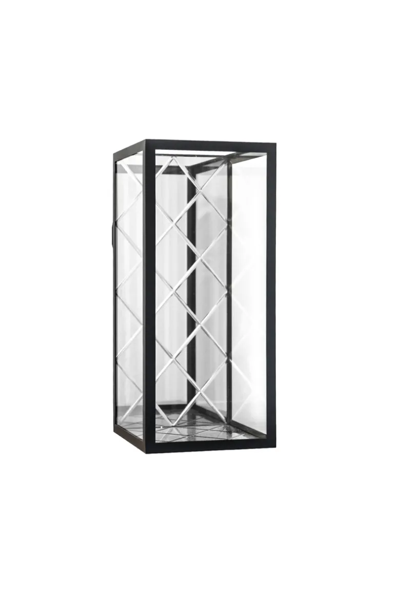 Harlequin Lanternen kommer i 4 størrelser, hvoraf denne variant kan anvendes til at hænge på væggen. Denne Harlequin størrelse har Harlequin spejl i bunden og på bagsiden. Lanternen er åben i toppen og kan ikke åbnes i siderne.
