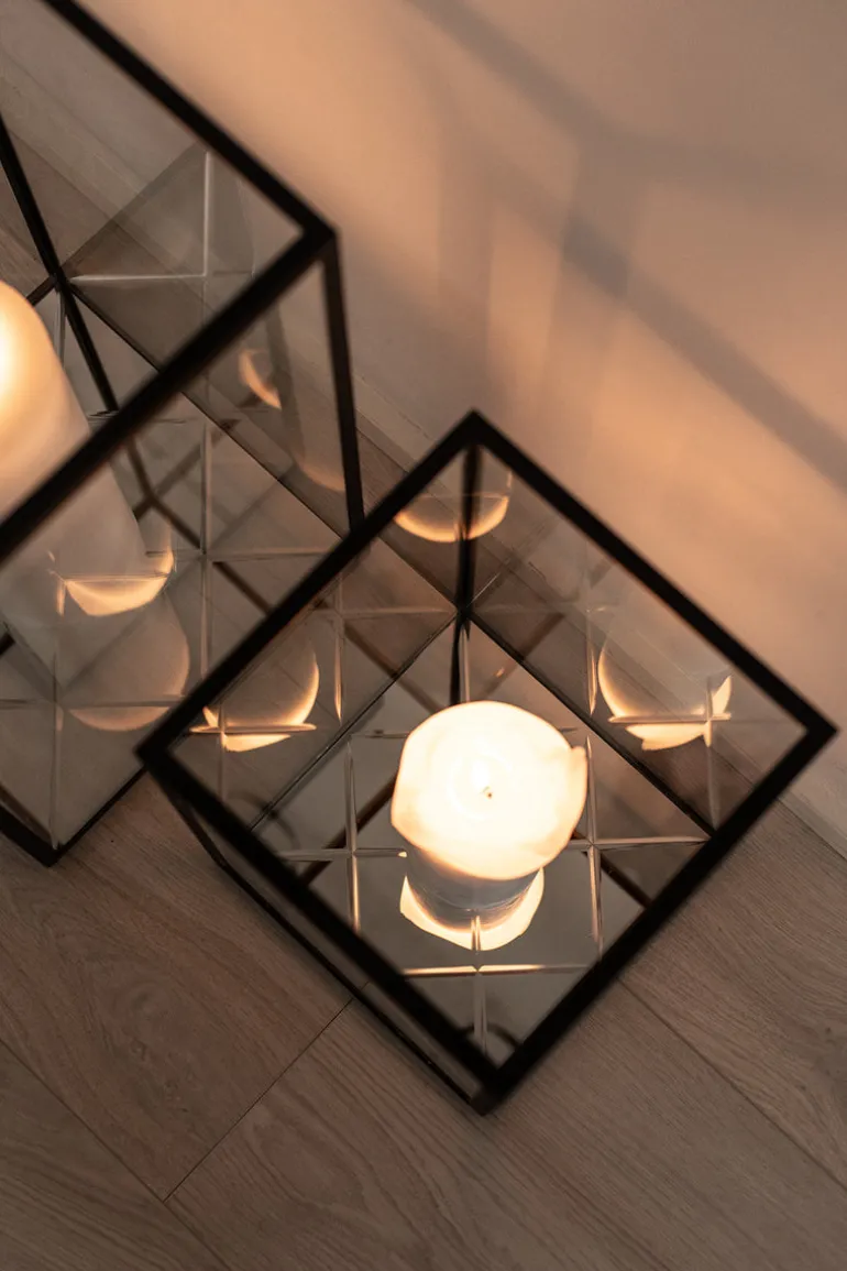 Harlequin lanternen kombinerer det klassiske og elegante med det mere rustikke.