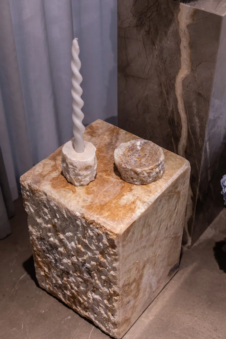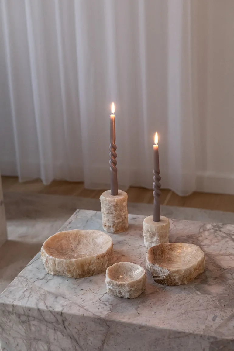 Ivy Bowl er lavet af det smukke, rå stenmateriale Onyx. Hver skål er helt unik i både farve og form og bærer sine egne karakteristiske træk, takket være det rå, smukke naturmateriale. Ivy Bowl er et 100% naturligt produkt, der omfavner og fejrer de ”uregelmæssigheder”, som er en naturlig del af stenen.