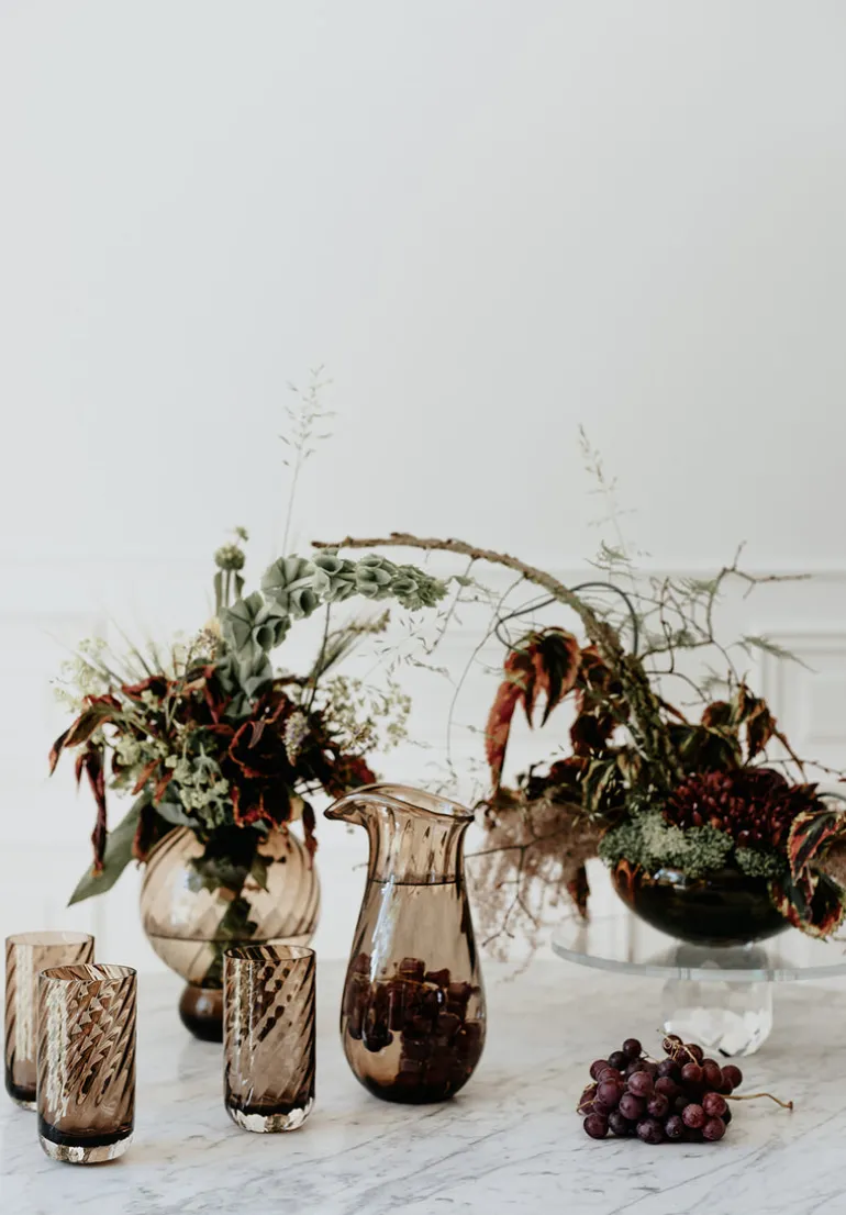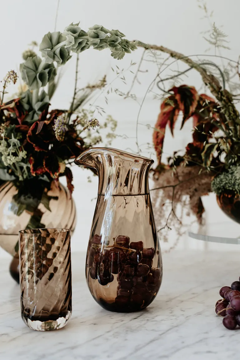 Meadow er en kollektion bestående af moderne, stilrene og håndlavede kander og drikkeglas. Meadow kollektionen er ideal til en smuk bordopdækning.