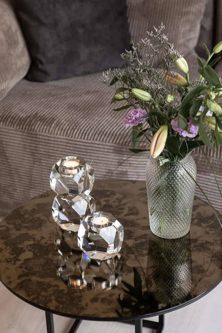 Det stilrene sorte stel, som skaber en smuk kontrast til den unikke spejlplade, forener det klassiske med det moderne.